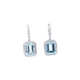 Aretes semi largos oro blanco 18kt con halo de diamantes y aguamarina corte esmeralda