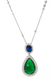 Collar en oro blanco con cabujón de zafiro redondo y cabujón de esmeralda en forma de pera